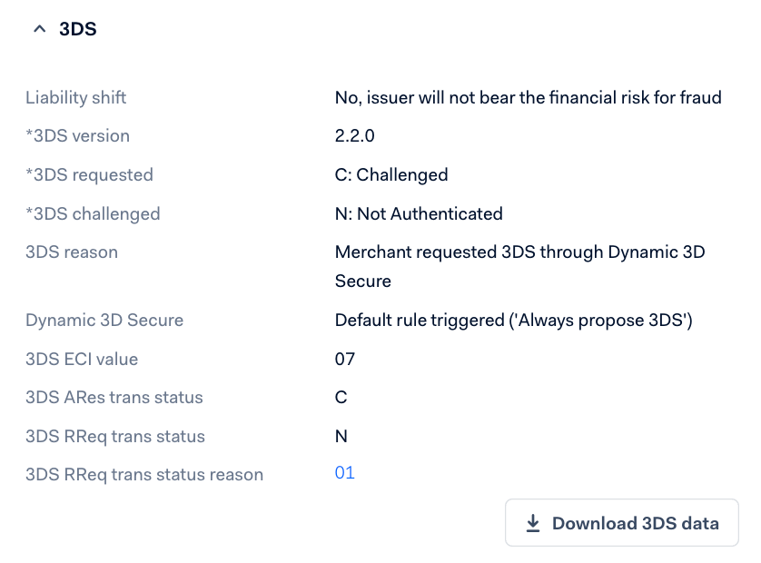このフィードバックは、支払明細ページの3DSセクションで確認できます。